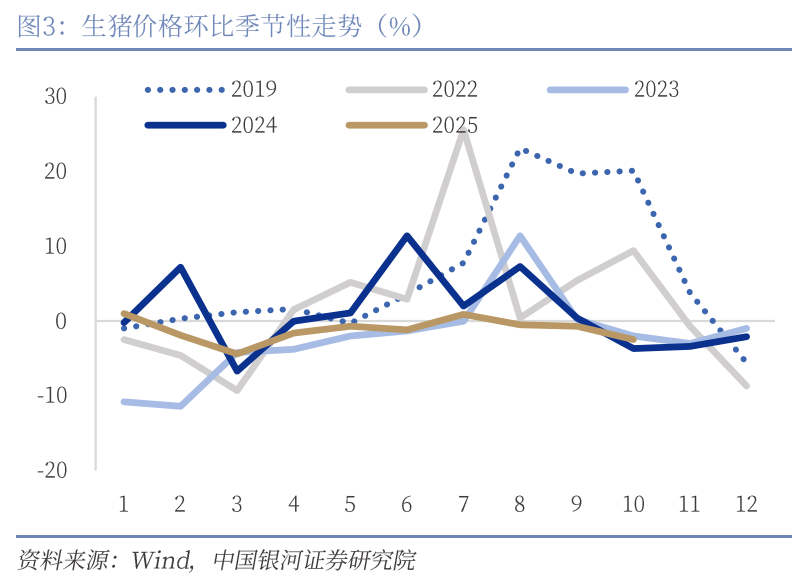 10月猪肉价格环比下降2.5%(前值-0.7%),过去五年环比同期均值为-1.1%。从供给端来看,当前能繁母猪存栏量减幅有限,产能去化相对缓慢。尽管整体养殖利润自9月中旬以来已以来进入亏损状态,但头部企业的生产效率带来的成本优势延缓了行业整体去产能的进程。叠加十一假期结束后消费需求回落,猪价承压下行。从高频数据来看,10月猪肉批发价环比跌幅继续扩大,同比降幅从26.3%稍微走阔至27.2%。