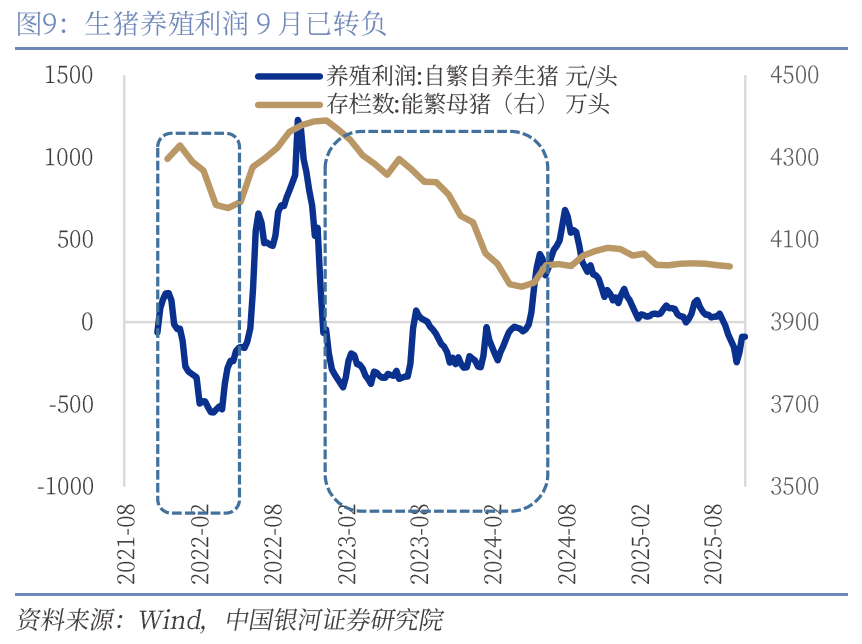 后续物价展望:本月CPI环比小幅改善,同比转为增长,翘尾因素改善或使得11月CPI继续回升。展望后市,一是关注猪肉产能的去化进度。政策层面上,2025年9月16日农业农村部召开生猪产能调控座谈会,明确要求头部25家养殖企业在2026年1月底前合计减少能繁母猪100万头,各省合计再减100万头。考虑到生猪从补栏到出栏约需10个月周期,母猪存栏调整对市场供给与价格的传导仍需时间。二是供应过剩与需求增长乏力构成主要挑战,油价或承压。三是治理企业低价无序竞争力度加大有助PPI回升,但向CPI传导效果仍有待观察。四是消费内生动能偏弱,后续核心CPI的修复可能需要依赖内需政策的进一步加码。